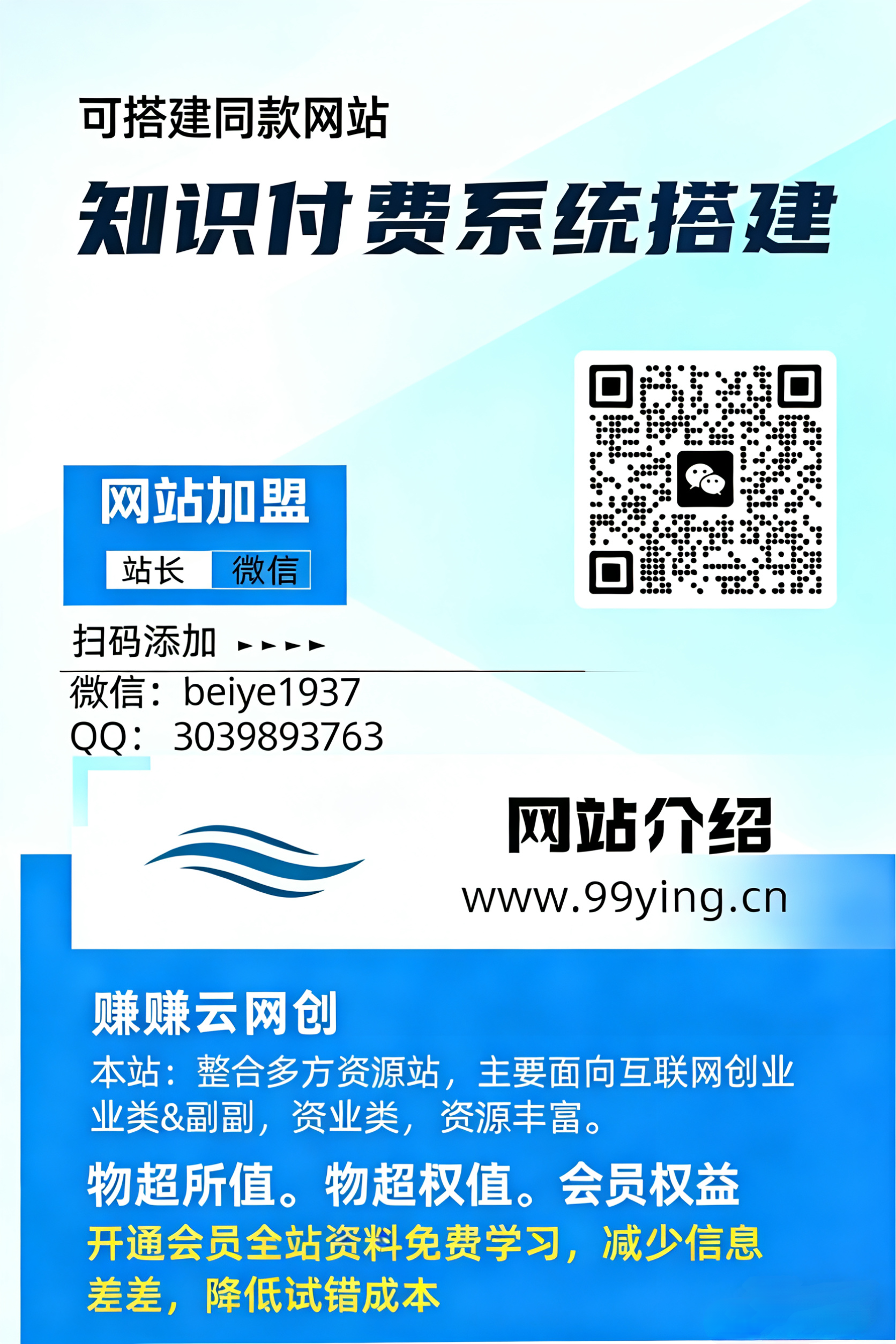 赚赚云网创开放加盟,搭建一个和赚赚云网创一样的知识付费平台,站长微信:beiye1937